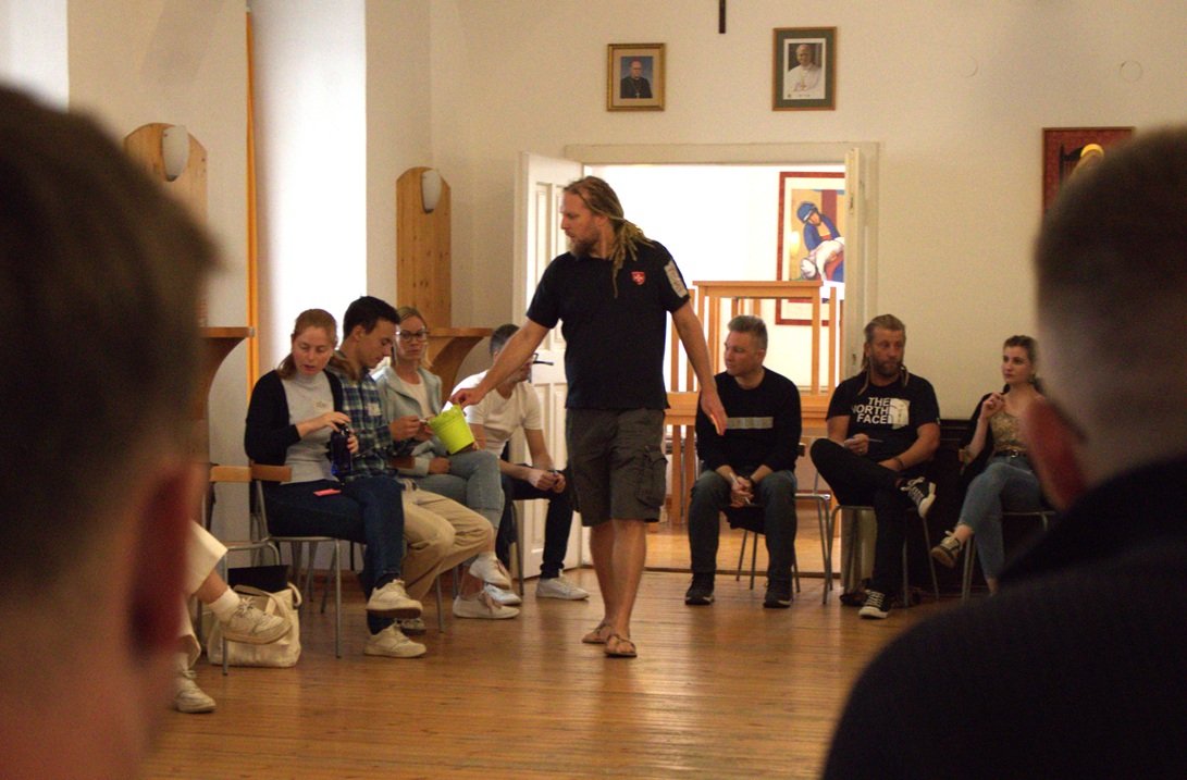 A délelőtt az ismerkedés és a csapatépítés jegyében telt. A jégtörő játék és a bemutatkozó kör után a jelenlévőknek kisebb csoportokban papírból kellett hidat építeni. Már itt kiderült, milyen fontos az együttműködés, a kreativitás és a közös gondolkodás. Ezután Szabó Tamás tartott vetítést „Hogyan leszek máltai önkéntes?” címmel. Bemutatta a folyamatot a jelentkezéstől egészen az önkéntes szolgálat konkrét feladataiig. Elmondta, hogy lehetőség van egyéni vagy csoportos, alkalmi vagy rendszeres önkéntességre, mindenki megtalálhatja a számára megfelelő tevékenységet. Az előadás egyik legfontosabb üzenete az volt, hogy az önkéntesség nem csupán feladat, hanem közösségi élmény és lelki út is. A közös munka értékek átadásáról és kapcsolatok építéséről szól. „Az irgalom Isten feltétel nélküli szeretete” – fogalmazott az önkénteskoordinátor, rámutatva, hogy a Máltai tevékenység lényege a szívből fakadó odafordulás.