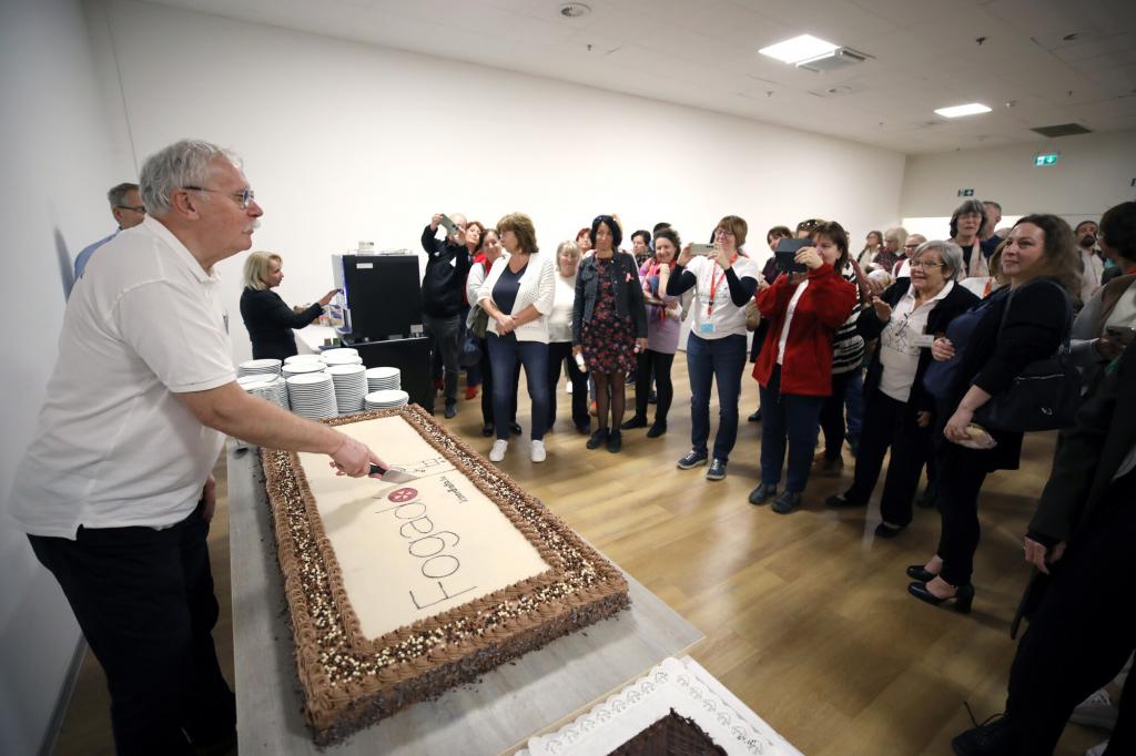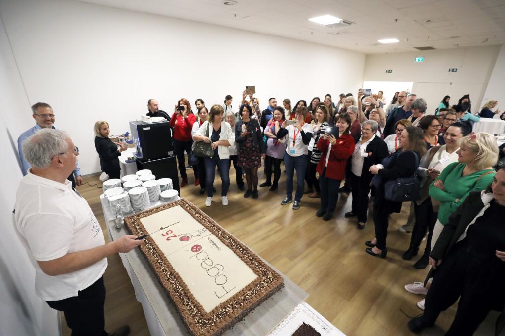 „Hiszek a terápiás térben. A kapcsolatokban, amik itt megszületnek, és hiszek a kapcsolatok gyógyulásában. Hiszem, hogy ha leülünk és komolyan figyelünk egymásra, másként fogunk tovább menni, több lehetőséggel és reménnyel. Hiszek benne, hogy az apró lépések hoznak változásokat. Hiszek abban, hogy vannak olyan pillanatok, amikor emberek megértik egymást, úgy, mint ahogy ezen a téren kívül nem, mert van, hogy másképp hallatszódnak a szavak. Hiszek abban, hogy felszínre emelhetők azok az erőforrások, amik reményt adhatnak a családokban. Hiszek az őszinte pillanatok varázsában. Hiszek a változásban, amikor fáj – mert sokszor fáj. Hiszek a visszanyerhető mosolyokban. Hiszek abban, hogy a kimondott és elhallgatott szavaknak ereje van és igazsága van. Hiszek a kimondott és elhallgatott érzelmek igazságában és hatalmában. Hiszek a karfán átnyúló kezek közeli, mély vigaszában, ahogy megérintik egymást” – fogalmazta meg Frankó András családterapeuta, a Fogadó Pszichoszociális Szolgálat vezetője a családterápiás munkával kapcsolatos meggyőződését. Ezt követően a résztvevők – Kovács András Péter humorista „irányadó” tájékoztatását követően – az ebédlőben tortával ünnepelték a Fogadó 25 éves fennállását.