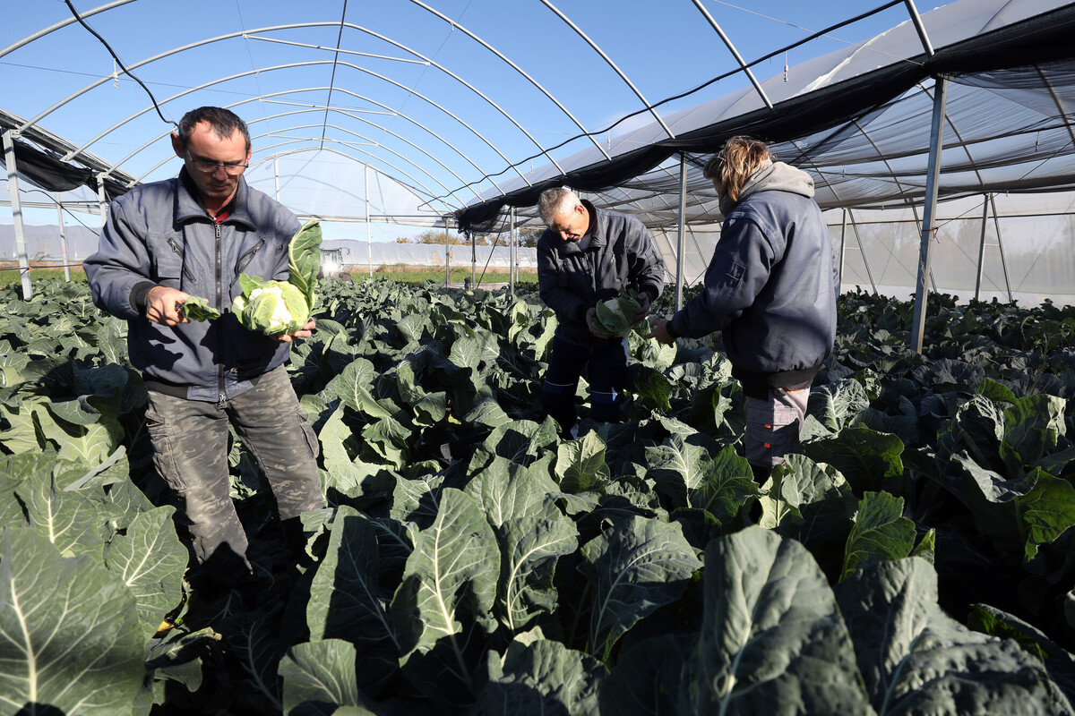 Tóth Imre körbevezet minket a gazdaságban, van mit nézni, 6,4 hektárnyi fóliasátor és még egyszer ennyi lucerna között sétálunk végig. A sátrakban mindenhol mértani pontossággal lefektetett csöpögtető rendszer húzódik, köztük dolgoznak a munkások, akad, ahol még folyamatban van a betakarítás (a káposzta szezonja egészen decemberig tart), van, ahol a nyári termények maradványaitól tisztítják a földet.