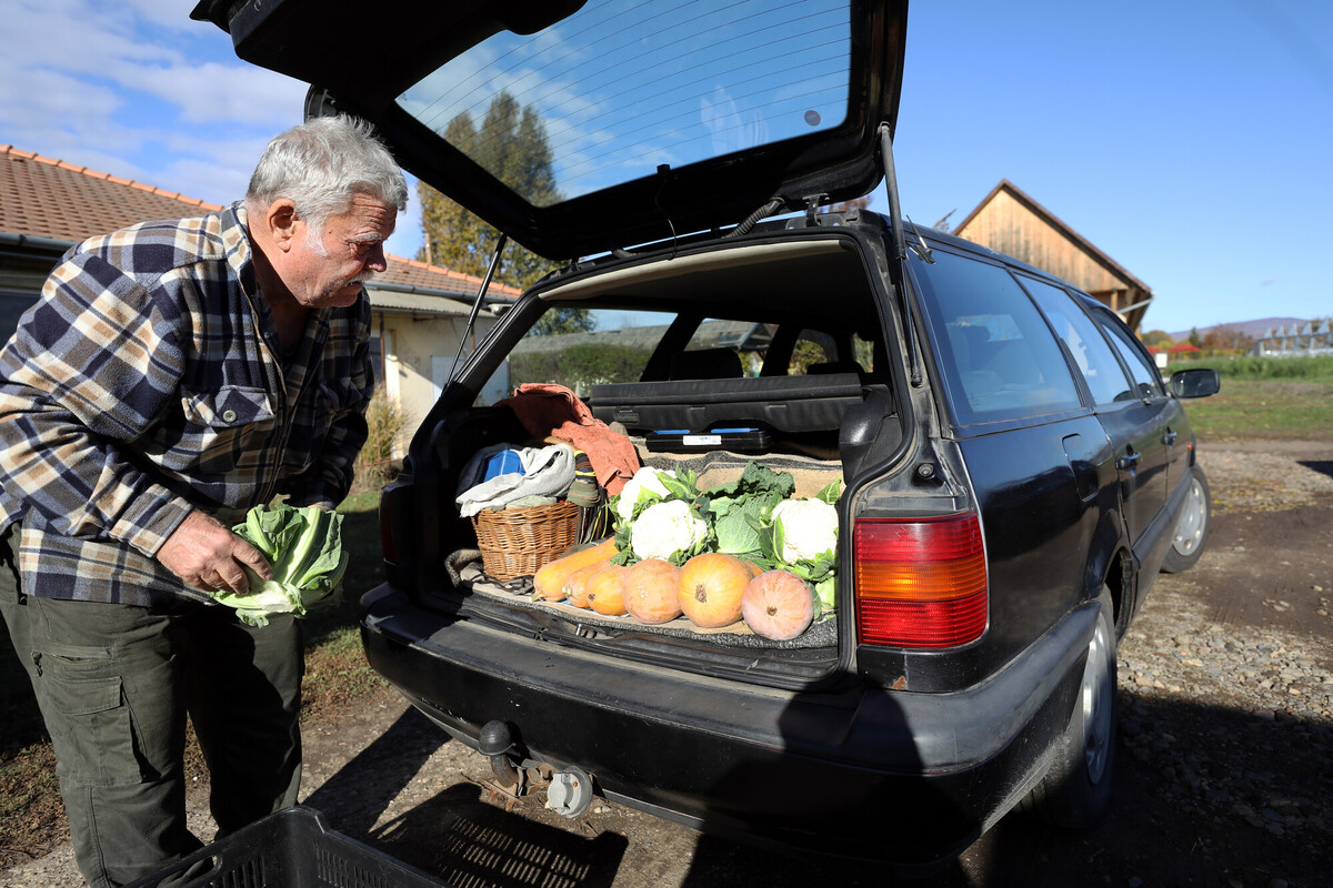 A zöldségek között válogató nő és fia amúgy Nagyútról érkeztek, és nem csak maguknak, de az egész családnak intézik a bevásárlást. Kérdésemre elárulja, hogy sok gyereke és még több unokája van, egyszerűbb így mindenkinek, otthon „leadják” a rendelést, ők pedig hazaviszik, végül több mint 40 000 forintot hagynak a kasszánál, de mondjuk a kocsijukba se fér több zöldség. Közben befut a következő vevő, ő csak pár káposztát szeretne vásárolni, de amikor meglátja a friss paprikát és kelkáposztát, elcsábul és azokból is vesz egy párat. Másodszor jár itt, első alkalommal nyáron jött, akkor paradicsomot és görögdinnyét vett, mindkettővel nagyon megvolt elégedve.