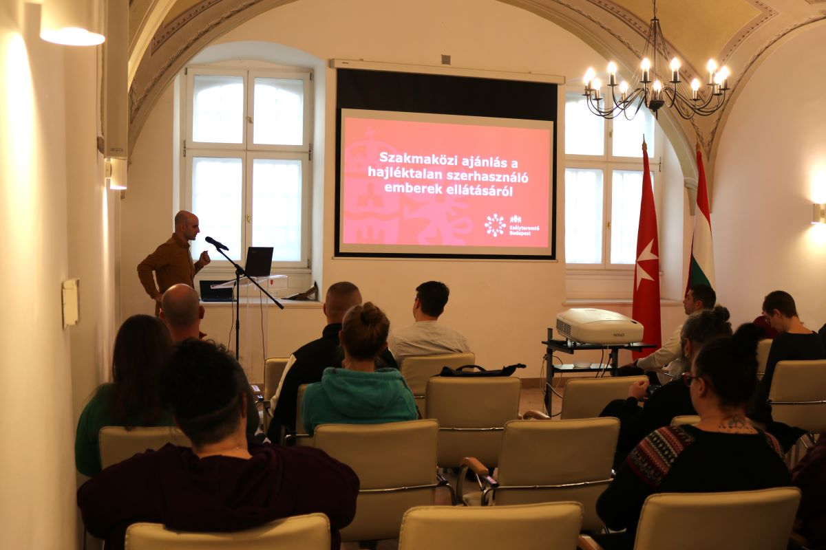 A konferencia nyitányaként Németh Mihály, a MRE KIMM Drogterápiás Otthon saját élményű segítője köszöntötte a résztvevőket, majd Miklós Kata, a Magyar Máltai Szeretetszolgálat hálózati munkatársa mutatta be a Száraz November hónap során megvalósult intézménylátogatások tapasztalatait. Első előadóként Dr. Csák Róbert drogstratégiai koordinátor (Főpolgármesteri Hivatal, Szociálpolitikai Főosztály, Esélyegyenlőségi és Társadalmi Innovációs Csoport) szakmaközi ajánlást mutatott be a hajléktalan szerhasználó emberek ellátásáról, aminek a célja, hogy javuljon a számukra elérhető szolgáltatások minősége és hozzáférhetősége.