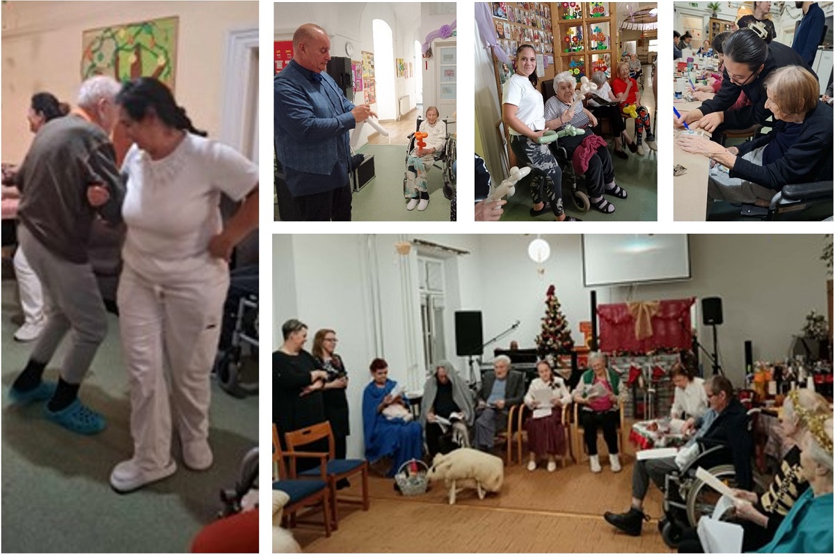 Lakóinknak nagyobb része nem tudja elhagyni az otthon falait, ezért részükre behozzuk a műsorokat tornatermünkbe. Így jött hozzánk fellépni a József Attila színház két színésze, Brunczlík Péter és Szucskó Noémi. Régi dalokból összeállított műsorral szórakoztatták otthonunk közösségét az operett énekesek, Juhász Erzsébet és partnere. Lakóink együtt énekelték velük az ismertebbnél ismertebb operett dallamokat. Nálunk járt Botos Veronika, a Magyar Állami Operaház első brácsása, akit Ruth Mónika zongoraművész kísért. Felcsendültek híres operák dallamai és a Diótörő balett zenéje is. Az év végi nagy karácsonyi ünnepségen egy szintetizátoros zenész, Borbély György és Dudó bohóc lépett fel.