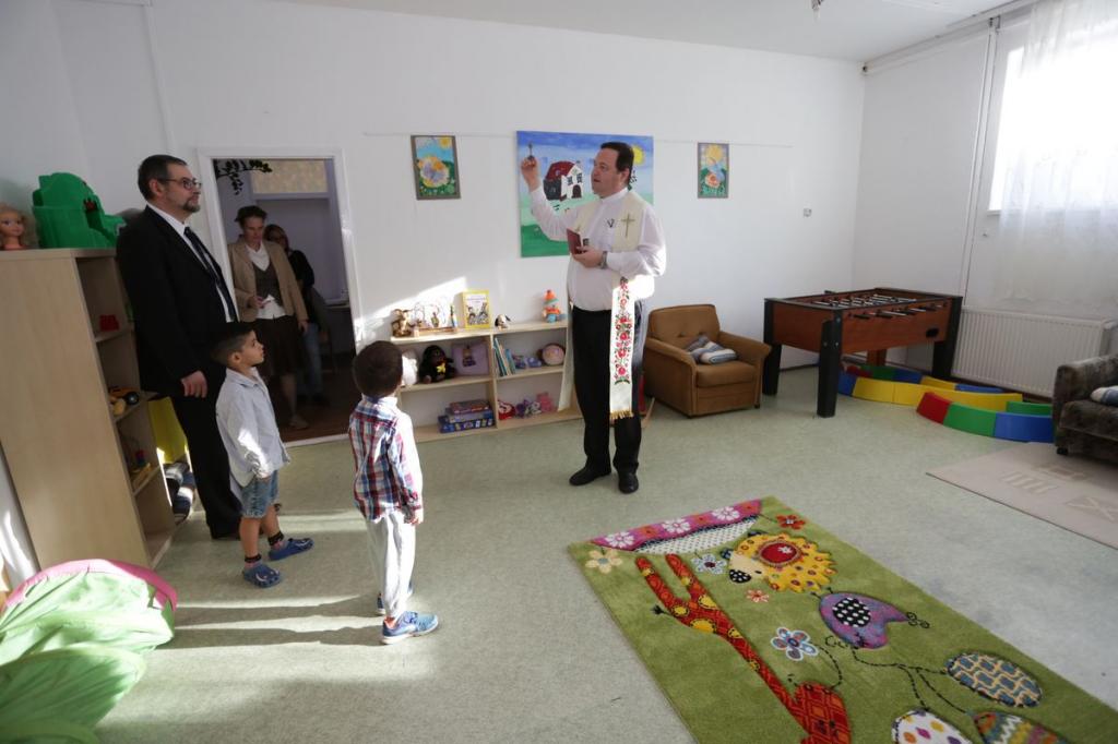 Kónya Attila atya áldása után az idősek klubja műsorát hallgatták meg az ünnep résztvevői. Az intézményben ellátott gyermekek boldogan vették birtokba a játszószobát. Az épületet megformázó torta elfogyasztása után elégedetten csillogó szempárok nyugtázták a kétéves felújítás eredményét.