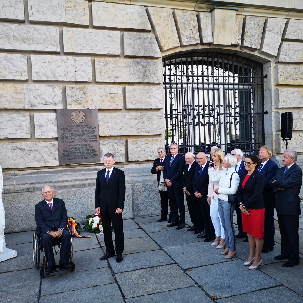 Az évfordulós eseményen Kövér László, az Országgyűlés elnöke és Wolfgang Schäuble, a német szövetségi parlament, a Bundestag elnöke koszorút helyezett el a Bundestag falán lévő emléktáblánál a magyar és német nép barátságának jelképeként, az egységes Németországért, a független Magyarországért, a demokratikus Európáért.