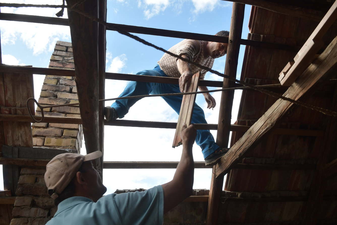 Közösségi összefogással állítják helyre a megrongálódott háztetőket (fotó: teol.hu)