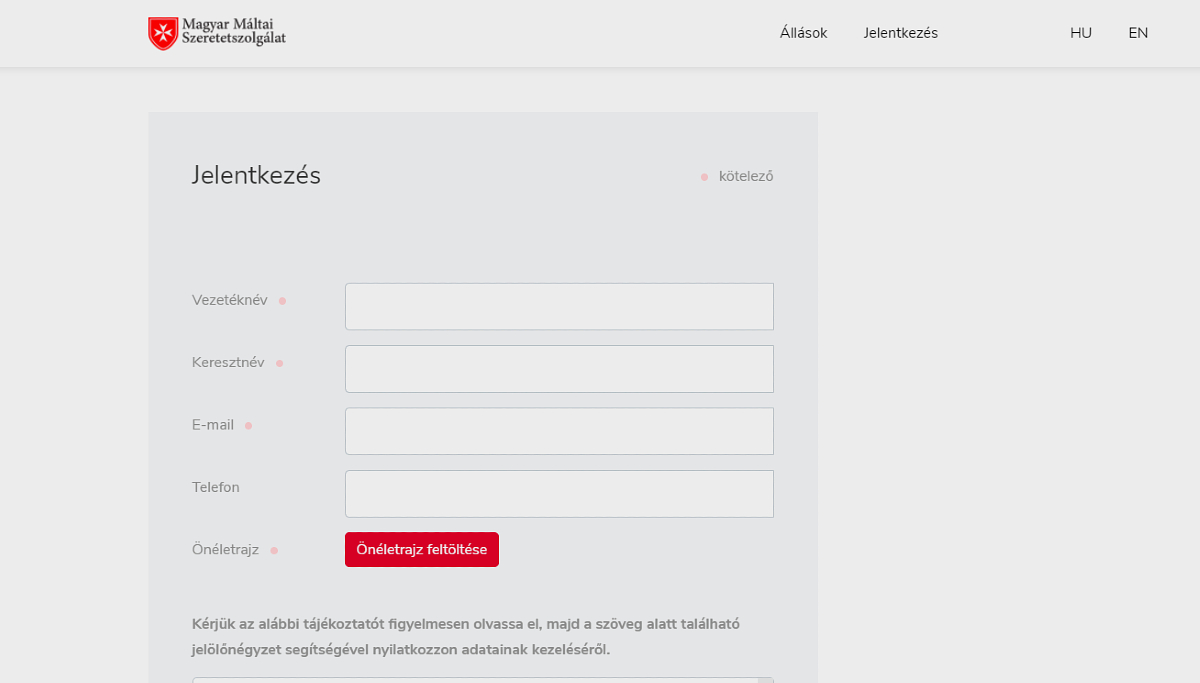 A Máltai Szeretetszolgálat HR-vezetője, Benkőné Lengyel Melinda elmondta, fontos része az oldalnak az álláshirdetésektől független jelentkezési felület, mert aki az aktuálisan meghirdetett pozíciók között nem talált számára megfelelőt, feltöltheti életrajzát a Máltai Szeretetszolgálat rendszerébe, hogy a szervezet a jövőben megkereshesse a pályázó által megjelölt munkakör lehetőségével. Az álláspályázat felölthető a „Jelentkezés” menüpontban.