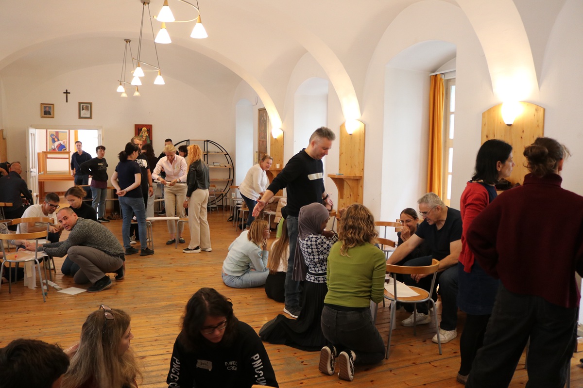 A délelőtt az ismerkedés és a csapatépítés jegyében telt. A jégtörő játék és a bemutatkozó kör után a jelenlévőknek kisebb csoportokban papírból kellett hidat építeni. Már itt kiderült, milyen fontos az együttműködés, a kreativitás és a közös gondolkodás. Ezután Szabó Tamás tartott vetítést „Hogyan leszek máltai önkéntes?” címmel. Bemutatta a folyamatot a jelentkezéstől egészen az önkéntes szolgálat konkrét feladataiig. Elmondta, hogy lehetőség van egyéni vagy csoportos, alkalmi vagy rendszeres önkéntességre, mindenki megtalálhatja a számára megfelelő tevékenységet. Az előadás egyik legfontosabb üzenete az volt, hogy az önkéntesség nem csupán feladat, hanem közösségi élmény és lelki út is. A közös munka értékek átadásáról és kapcsolatok építéséről szól. „Az irgalom Isten feltétel nélküli szeretete” – fogalmazott az önkénteskoordinátor, rámutatva, hogy a Máltai tevékenység lényege a szívből fakadó odafordulás.