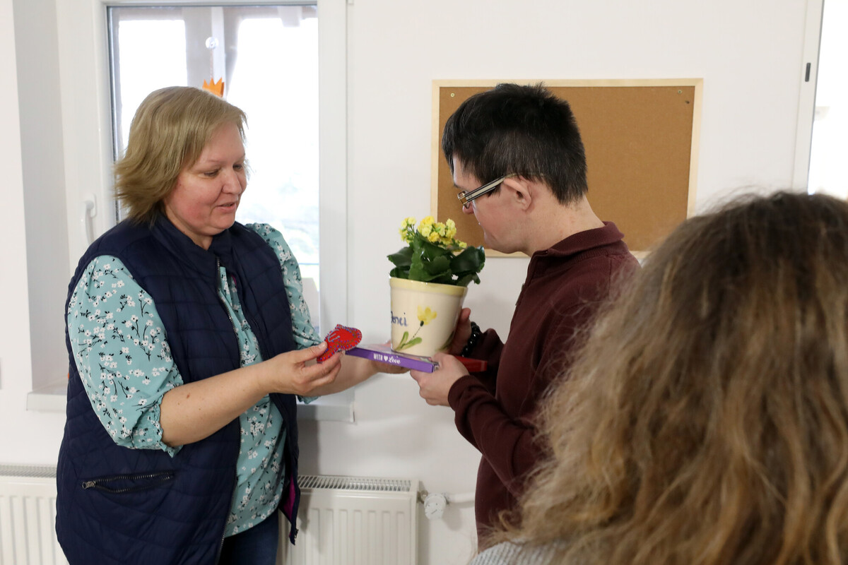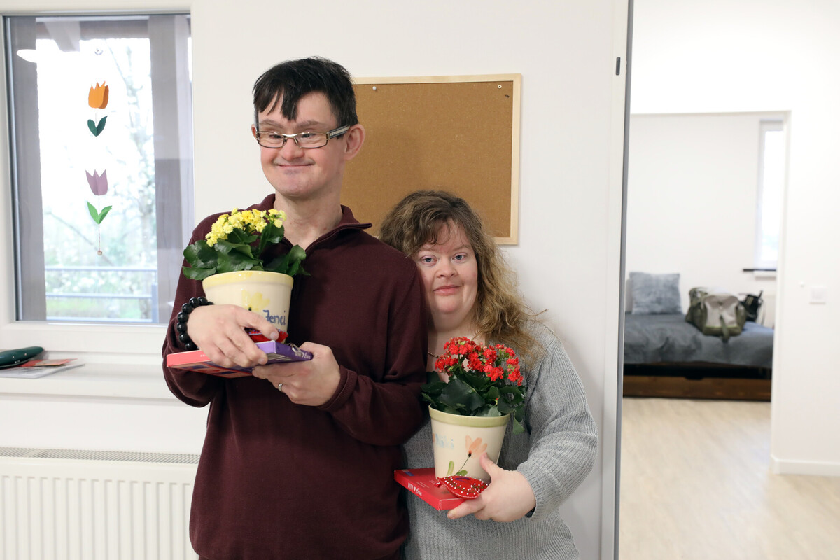 Gyárfás Erzsébet emlékeztet, hogy 2018-ban már volt egy esküvő Pátyon, két lakóotthonban élő házasodott össze, ami maradandó élmény volt az egész közösségnek. Örülnek, hogy a ház lehetőséget tud adni Nikiék számára is a páros élethez. Ő és munkatársai szeretettel és odafigyeléssel fordulnak minden lakó felé, megtanulják a gesztusaikat, igyekeznek minél jobban megismerni őket, hogy személyre szólóan tudják támogatni a fiatalokat a mindennapokban. Ajándékkal is készülnek minden beköltözőnek, csokoládéval és cserép korallvirággal.