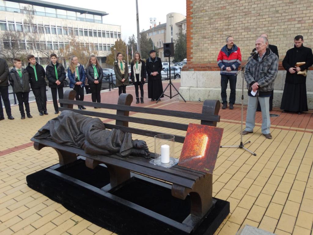 A Pécsi Székesegyháznál mutatták be a Hajléktalan Jézus szobra